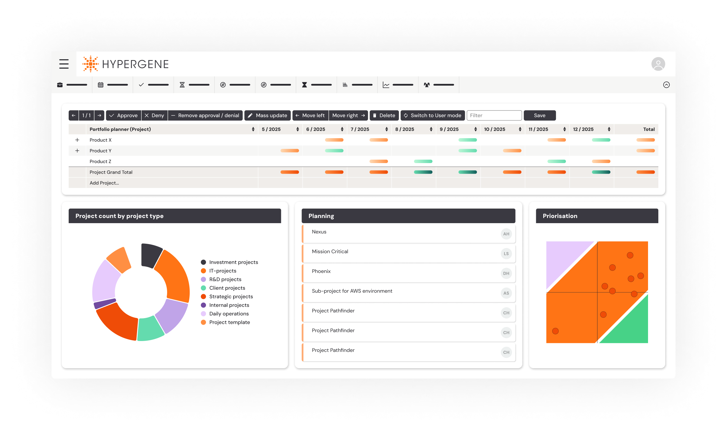 Hypergene Portfolios -palvelumme mahdollistaa muun muassa projektien, sovellusten, palveluiden, riskien sekä resurssien salkuttamisen tietoturvallisesti. Toimialariippumaton ratkaisu tukee strategisen tason johtamista ja päätöksentekoa.